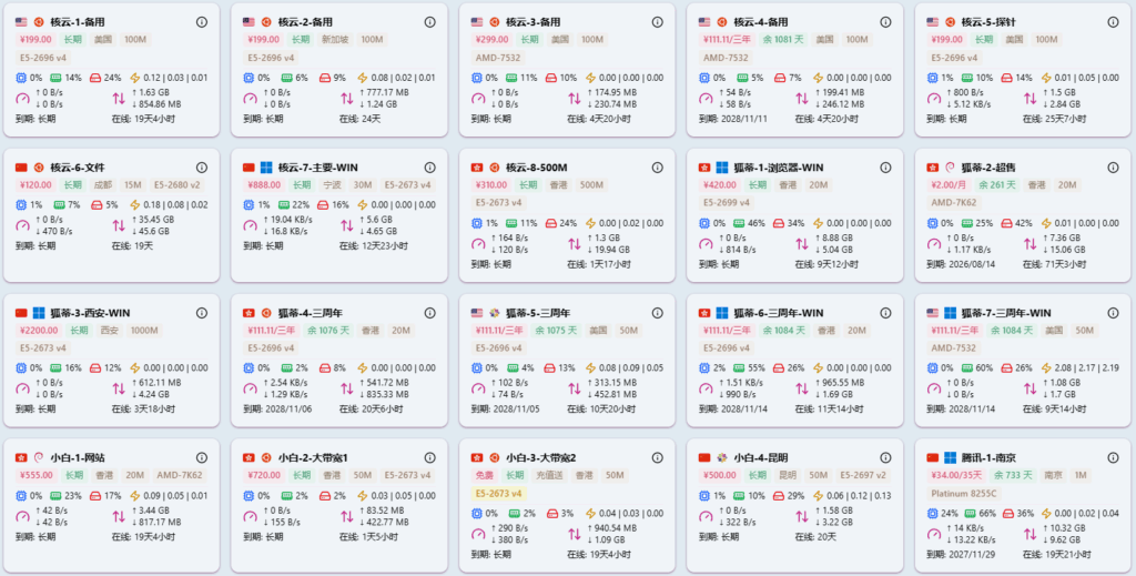 人如果有资产,那么不可避免的陷入商人的思维,我现在有一点可以交易的云服务器。心中不自觉的想看看行情如何,就是这么的让人陷入两难。人求全,如,美国,香港,国内,人求线路,CN2,CMI,人求存储,40G,40G+4G,80G,1000G,人求性能,2核2G,4核4G,16核16G不断提升。后面你发现陷入漩涡中。探针,日志网站,共享数据库,转换工具,文件共享,加密。